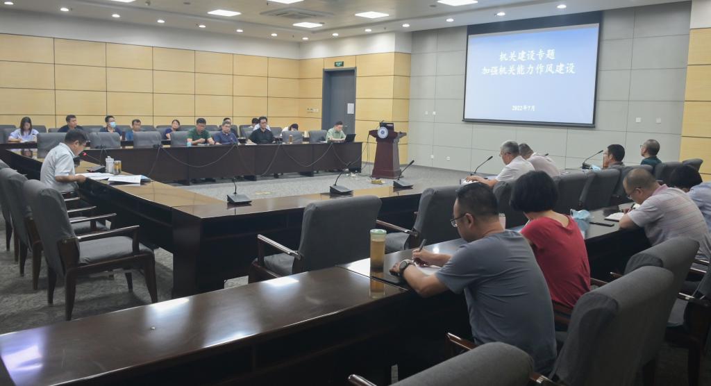 7月13日上午,365英国召开2022年暑期工作研讨会机关能力作风建设专题会。会议由机关党委书记叶佳林主持。机关各职能部门负责人,图书馆、后勤处、离退休工作处负责人参加。