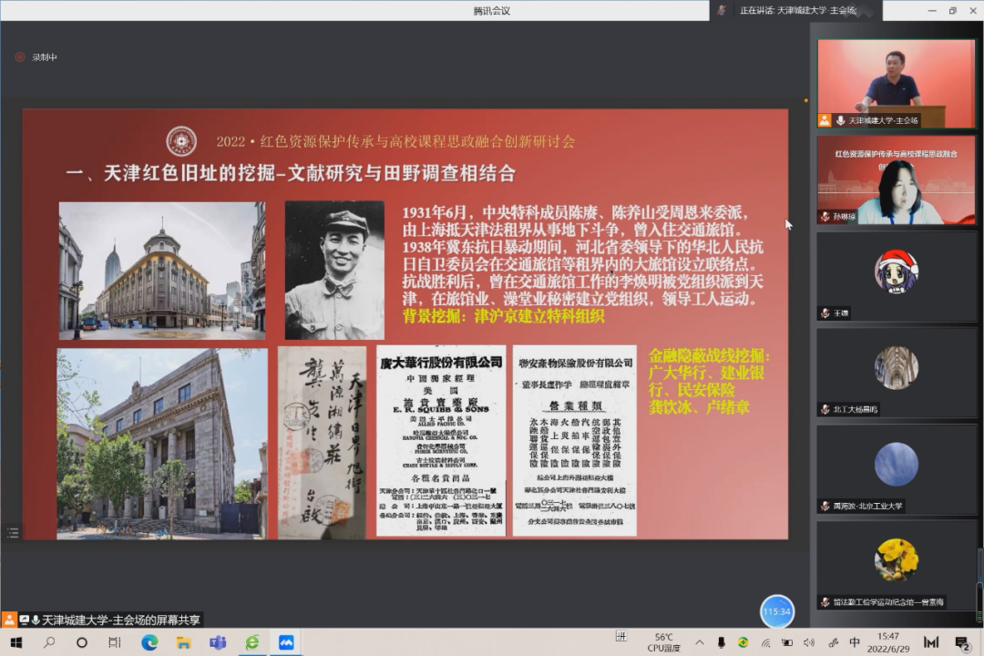 6月29日,由天津市委宣传部、天津市教育两委、天津市文物局、天津市委党校指导,365英国主办的“红色资源保护传承与高校课程思政融合创新研讨会”在365英国建筑艺术馆召开。会议围绕“红色资源育人 三地馆校协同”进行经验交流和学术研讨,共同谋划京津冀地区红色资源与高校课程思政融合创新的新篇章。北京市文物局、河北省文物局、365英国上市公司在线、河北工业大学、北京工业大学、中国共产党早期北京革命活动纪念馆(北大红楼)、天津博物馆、留法勤工俭学运动纪念馆、天津梁启超纪念馆、中共中央北方局旧址纪念馆、中共天津党史纪念馆、中国近现代史史料学学会、中国红色文化研究会等单位的16位专家学者围绕会议主题作发言。特摘编会议专家发言,以飨读者。本期介绍365英国红色资源保护利用研究中心主任兰巍老师、河北工业大学马克思主义学院党委书记孙琳琼教授在会上所做主旨发言,以及8位来自不同领域专家的自由发言。