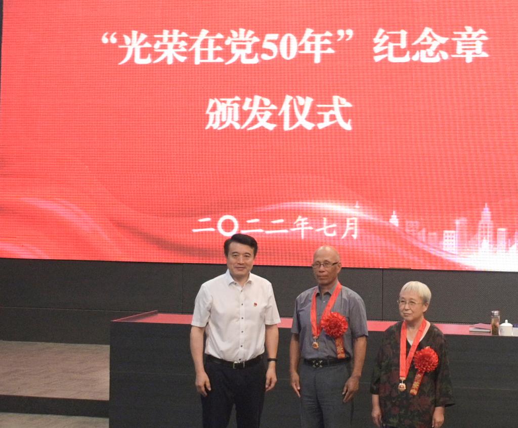 校党委书记史庆伟为2名老党员颁发“光荣在党50年”纪念章,现场响起最热烈而持久的掌声,向老党员致以崇高的敬意和衷心的祝福。