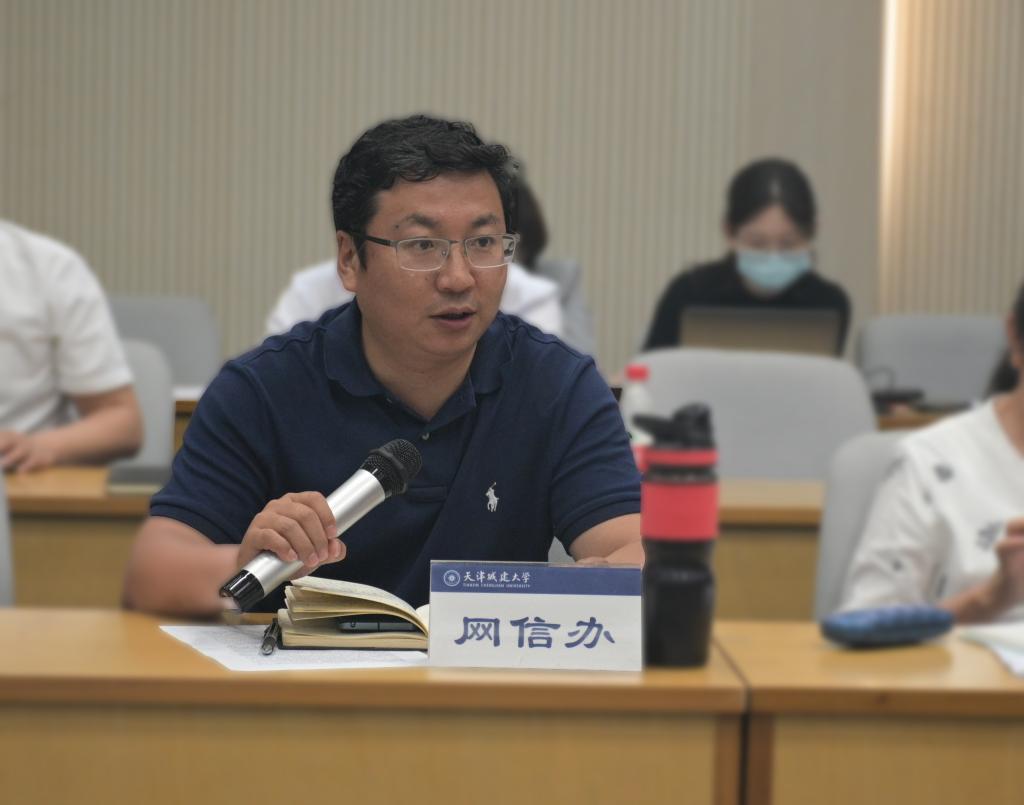 党委办公室相关负责人分别以“深挖管理服务育人要素,积极构建管理服务体系”“进一步深化安全管理标准化工作 不断提升平安校园建设水平”为题介绍了学校近年来管理服务育人和安全稳定体系建设相关情况及成效,并就相关议题和与会人员进行讨论。