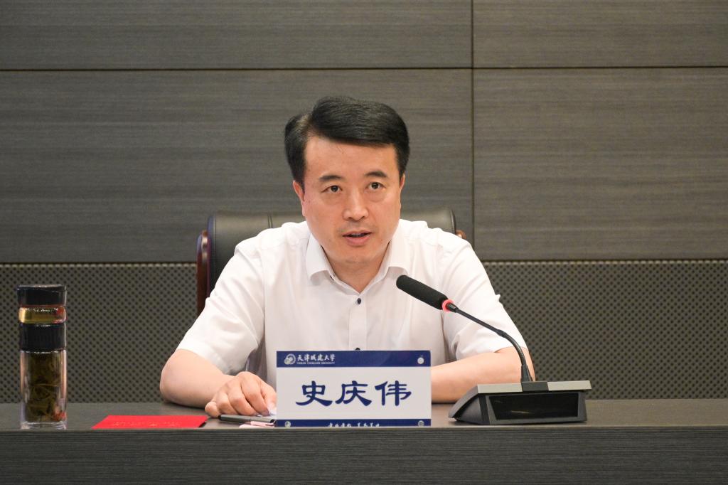 校党委书记史庆伟在讲话时,首先向全校教职工致以节日的问候和衷心地感谢,并总结回顾了学校近十年来在天津教育发展进程中各项工作取得的显著成就和进展。史庆伟强调,这十年,是学校教师队伍不断壮大、人才水平不断提高的十年;是学校各项事业加速发展、内涵提升的十年;是学校的党建和思政工作高质量发展的十年;是我们经历大事件、通过大考验、收获大成果的十年。史庆伟代表学校党委高度肯定了全体教职工辛勤耕耘、敬业奉献,为学校高质量发展做出的重大贡献。今年正值党的二十大召开之年,是学校发展中极不寻常的一年,是学校第二次党代会五年战略目标的关键之年,也是“十四五”发展承上启下之年。在高质量发展的关键时刻、吃劲时刻,史庆伟向广大教职员工提出希望和要求:一是要政治坚定,心怀国之大者,忠诚于党和人民的教育事业,自觉把党的教育方针贯彻到教学管理工作全过程。二是要涵养高尚师德,做“经师”“人师”的统一者,为党和国家培养更多可堪大用、能担重任的栋梁之才。三是要焕发精神、抢抓机遇、勇于担当,保持干事创业的不竭动力,努力建设高水平城建特色大学,以优异成绩迎接党的二十大胜利召开!