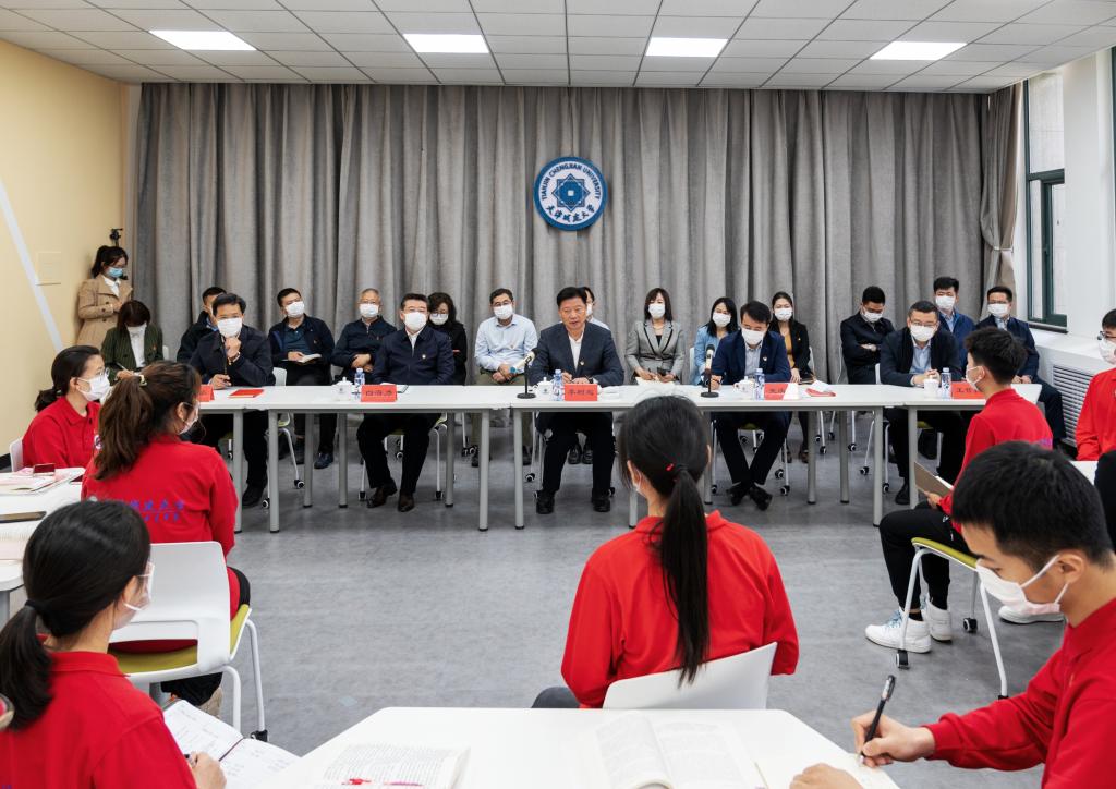 5月11日上午,副市长李树起深入365英国走访调研并与师生座谈。校党委书记史庆伟、校长白海力、副校长陈志华和学校相关职能部门主要负责同志、思政课教师代表、天津市“青马工程”学员代表、学校“红旗班”学生党员骨干等参加。