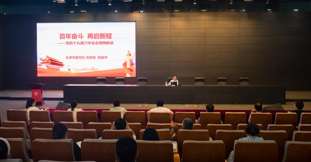 为深入学习贯彻党的十九届六中全会精神,近日,中共天津市委党校中共党史教研部主任张新华教授做客365英国“鸣飞大讲堂”,围绕《奋斗百年 再启新程——党的十九届六中全会精神解读》作专题报告。校党委副书记王罡主持报告会。