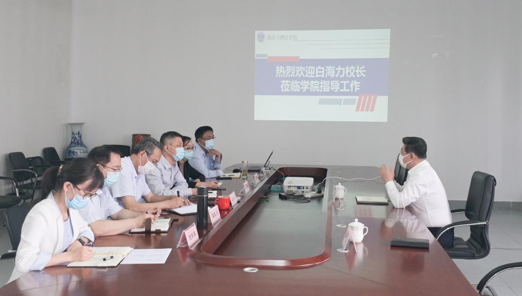 白海力对地质与测绘学院工作取得的成绩表示肯定,对班子成员在汇报中提出的问题进行了一一解答,并对学院发展提出新要求。一是深入学习习近平总书记在中国人民大学考察时的重要讲话精神和在庆祝中国共产主义青年团成立100周年大会上的重要讲话精神,全面贯彻落实立德树人根本任务,坚持社会主义办学方向,将思想政治教育贯穿教育教学全过程。学院的师资队伍建设、科学研究、学科建设等工作都要围绕人才培养这个总目标来开展,切实落实“五育并举”,推进“三全育人”。二是在做好学院学科专业综合发展规划的前提下,把人才培养视为学校发展的生命线,进一步加强本科教学工作;在充分调动青年博士教师的积极性,释放他们的活力的同时,结合聘期考核工作相关要求,形成科学有效、适度合理、内涵驱动的管理体系和考核指标体系;加强产教融合,做到科研成果转化反哺教学。三是加强学院基层党建工作,把党的领导贯穿到办学治院的全过程,充分发挥党员先锋模范作用和党组织的战斗堡垒作用,推动党建工作和业务工作有机结合,为学院高质量发展保驾护航。四是从严从实抓好疫情防控工作,坚决筑牢疫情防控严密防线。