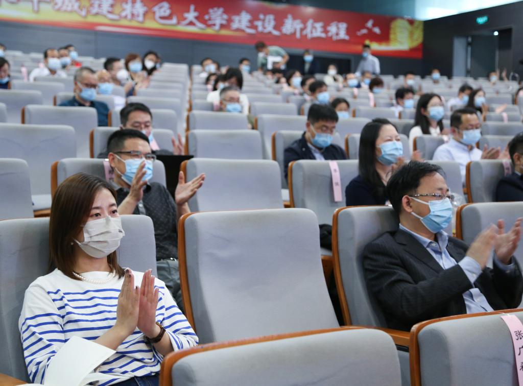 校党委书记史庆伟以《弘扬伟大抗疫精神,汇聚发展磅礴伟力》为题,给全体参会师生上了一堂生动的抗疫思政课。