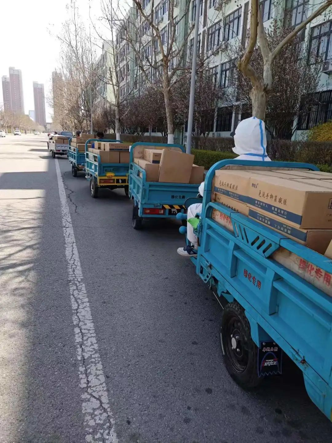 苗新权师傅是绿化驻校服务团队的负责人,4月2日凌晨在得到紧急开展全员核酸检测的通知后,他在核酸检测现场和防疫物资库之间奔波转运物资。而在日常防控工作中,他既要分工协调、巡视检查,每天还要完成物资搬运、支援救急等的临时性任务。