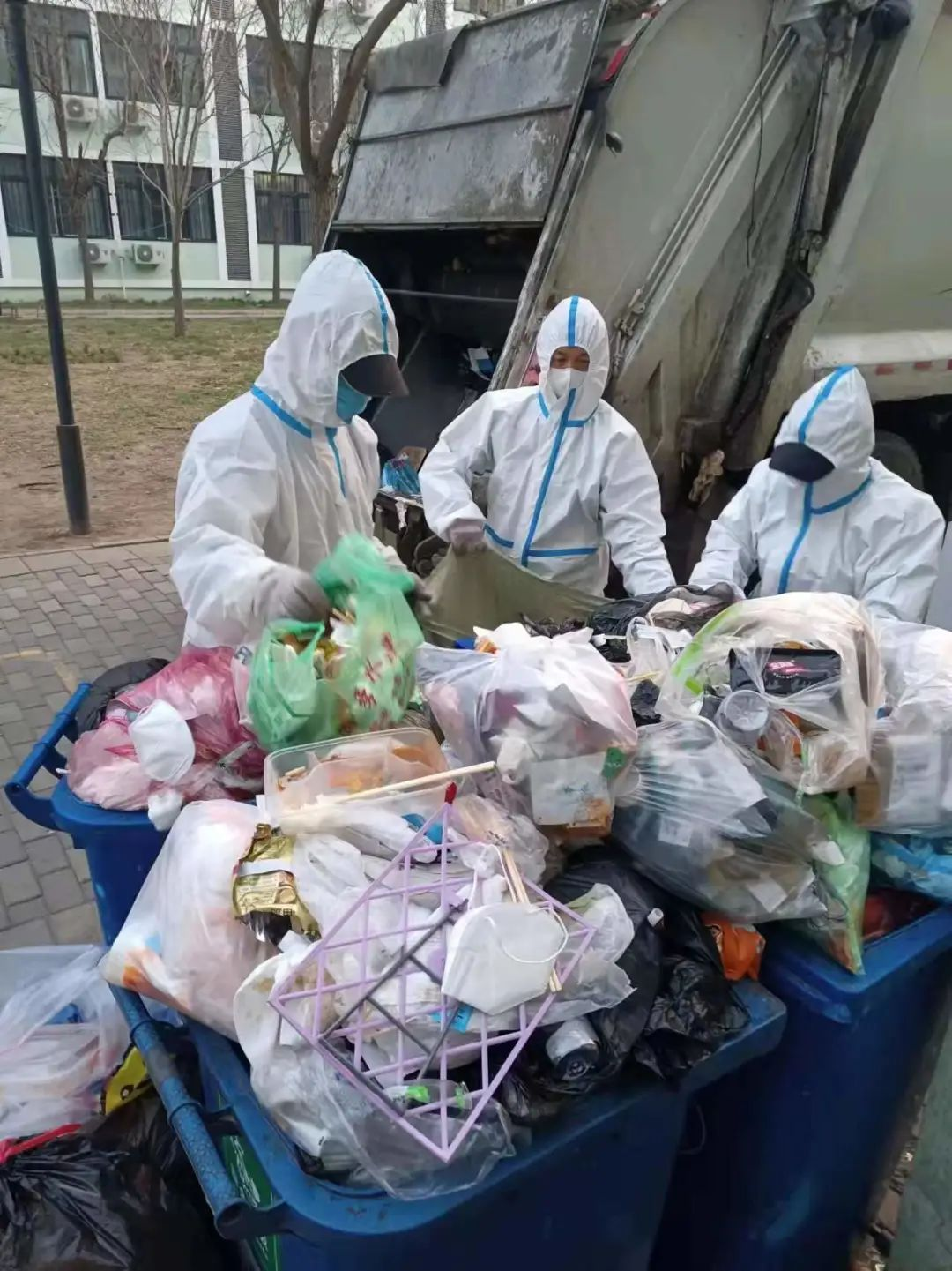 每日三餐后是师傅们最忙的时候,大量一次性餐具集中搬运下楼,师傅们分别赶到宿舍区门口,迅速装袋,确保垃圾有序清运。等师傅们装车完毕,清理消毒后早已过了饭点,此时他们拖着疲惫的身躯返回驻地吃饭,简单休息过后又投入到下一阶段工作中。当师生们竖起大拇哥,道声辛苦的时候,师傅们也只是憨憨地微笑。他们没有任何豪言壮语,但正是在这群可爱大爷们忙碌的身影中才有了干净、卫生的校园环境。