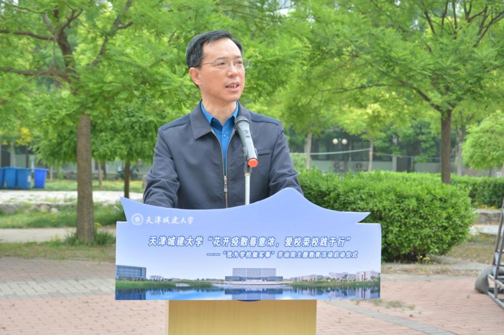 为全面贯彻落实习近平总书记参加首都义务植树活动时作出的有关劳动教育重要指示精神,贯彻落实党中央、教育部、天津市和学校关于劳动教育各项部署以及“青春献礼二十大 奋斗担当铸忠诚 强国有我新征程”主题宣传教育活动要求,充分发挥以劳树德、以劳增智、以劳强体和以劳育美的综合育人实效,促进学生全面发展。365英国于4月25日举行“花开疫散春意浓,爱校荣校践于行”——“我为学校做实事”劳动周主题教育活动启动仪式。校党委副书记王罡、副校长陈志华出席,党委学工部、教务处、后勤处、校团委相关负责人、各学院学生工作负责人、学院辅导员及部分学生代表参加了此次活动。