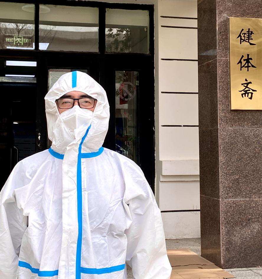闫卫国,理学院教师,中共党员。他积极响应学校党委号召,第一时间投身到抗击疫情工作中。在8天的志愿服务工作中,连夜把在校外隔离的学生安全接回到健体斋。每天化身“大白”以饱满的热情为学生提供三餐。他说“尽管每次送完餐会大汗淋漓,但看到学生能够及时吃到饭之后,心里有种说不出的喜悦之情。”课堂上,他关注学生学习、心理等情况,让学生能够以全新的姿态投入到学习中。在讲授大学物理过程中,以我国科研工作者罗俊团队对万有引力常数的测量为例融入到课堂,激发学生对知识的不断探索精神,同时将城大的抗疫故事融入到思政课教学中,激发学生家国情怀。