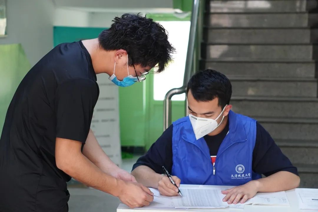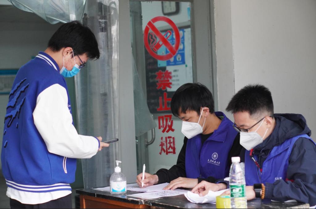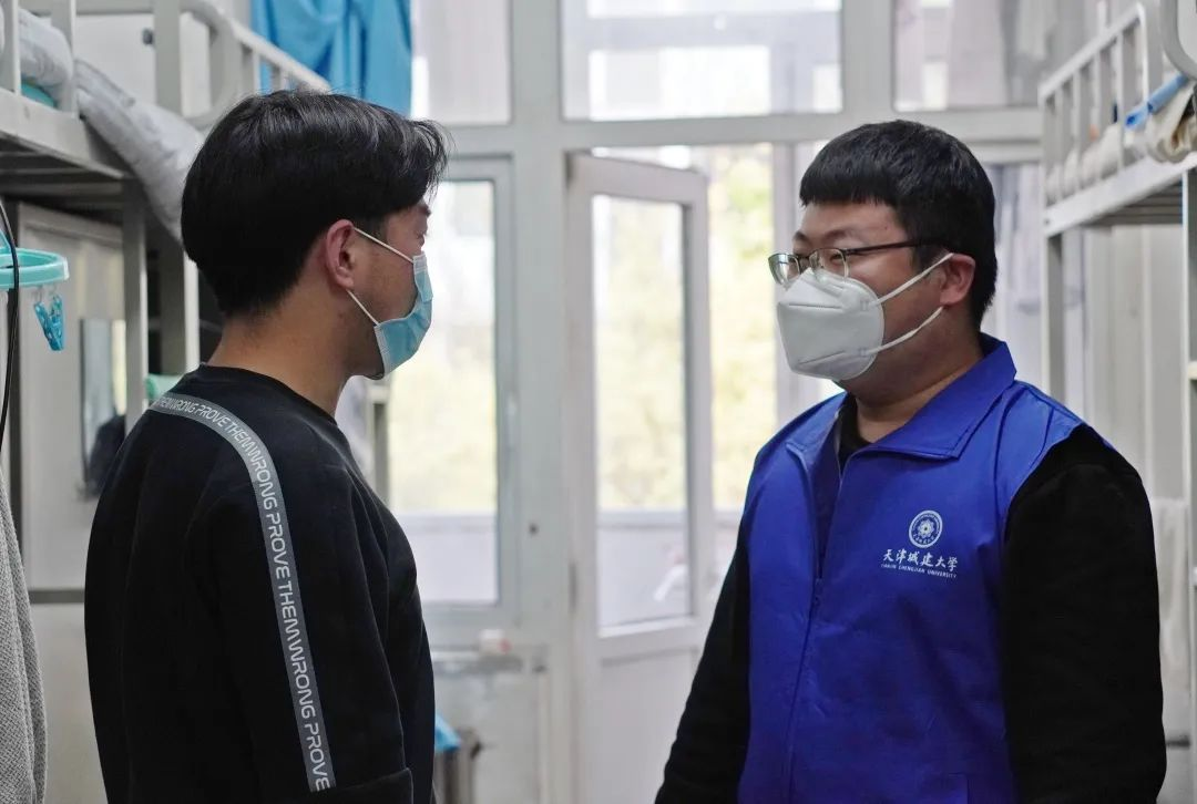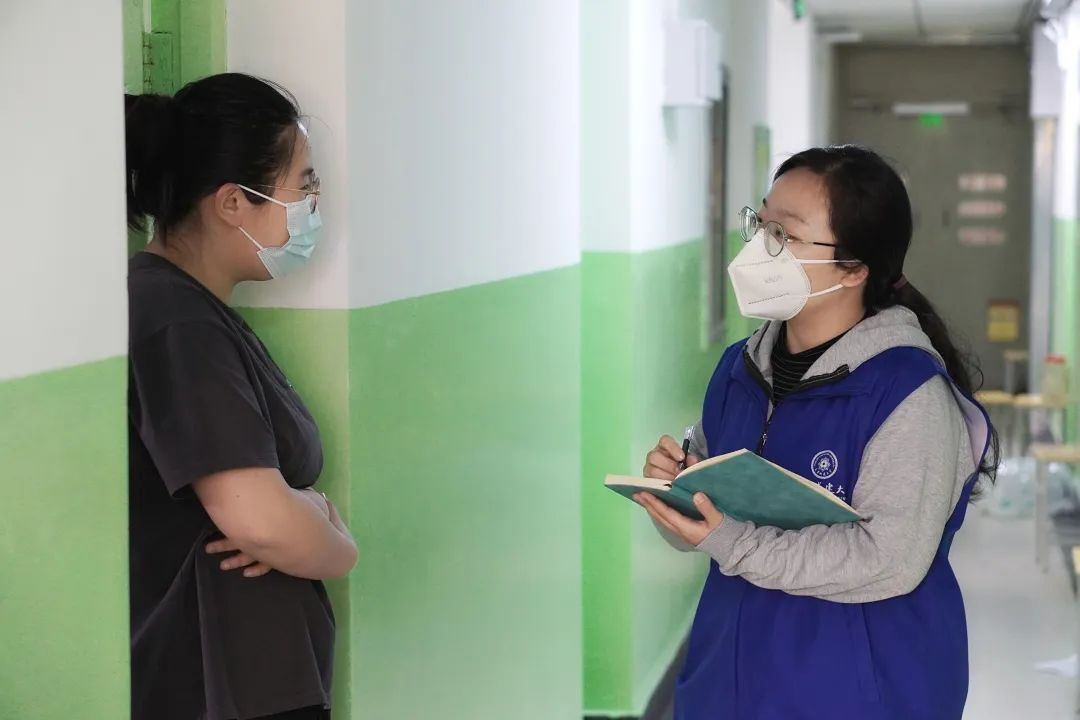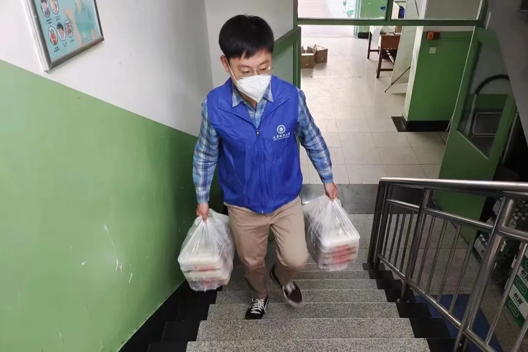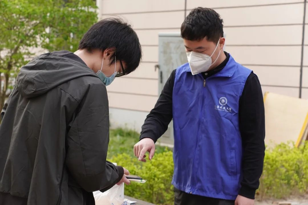 入住公寓同吃同住,守望相助,数据排查、沟通联络、催餐取餐、统计人数、搬运物资、心理安抚、出入登记、处理学生身体不适等突发事件……公寓门口、食堂门口、浴室门口,到处可见他们的身影。