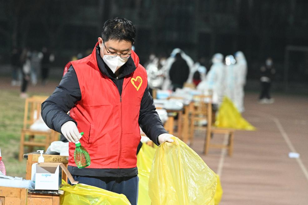 郑茜,党委组织部干部,中共党员。该同志在认真完成各项部门工作任务的同时,先后9次积极参加核酸检测志愿服务,负责维持现场秩序,提醒师生“戴好口罩、保持两米间隔、有序排队、有序跟进、提前亮码”,几个小时下来他嗓子都喊哑了。在学生公寓,他化身“配送员”,切实保障所负责的6个楼栋的棉签、箱码等各类物资供给。连续多天,平均每天休息时间不到5个小时,但他从不喊苦喊累,就是一个字“干”。
