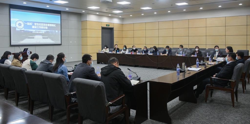 王罡强调要着力加强学生社区管理人员队伍建设,建立常态化工作培训机制,将学校育人资源和育人优势推广到学生社区,汇聚各方育人力量,构建全员协同配合的工作格局。
