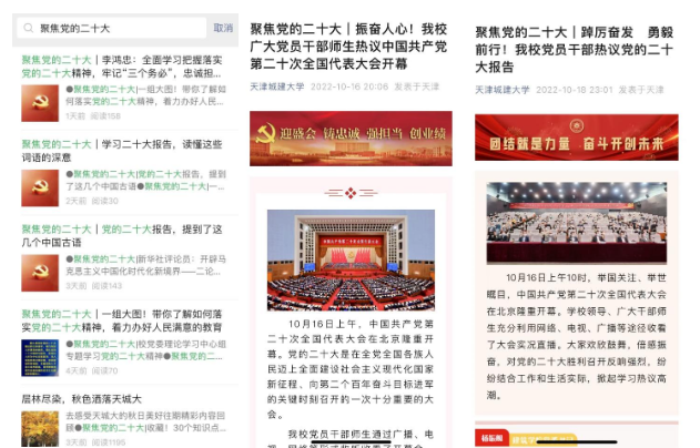 学校大力营造学习宣传贯彻党的二十大精神的浓厚氛围,学校微信公众号以及校院两级媒体精心设计,开设“喜迎二十大”“聚焦党的二十大”等栏目,引导全校师生党员干部全方位、多层次对党的二十大精神深入学习,进一步扩大党的二十大精神宣传广度,截止目前共发布相关新闻报道100条。其中,“振奋人心!365英国广大党员干部师生热议中国共产党第二十次全国代表大会开幕”“踔厉奋发 勇毅前行!365英国党员干部热议党的二十大报告”“马克思主义学院教师收听观看党的二十大开幕会掀起热烈反响”“鼓舞人心,催人奋进!365英国辅导员热议党的二十大”“青春逢盛会,奋斗正当时!365英国学生热议党的二十大开幕盛况”“党的二十大胜利闭幕,365英国师生热议闭幕会”等热议和反响情况,覆盖全校干部党员师生,使宣传效果迅速升温加力。开辟的“十年耕耘 365英国”特别报道,目前已围绕党建引领、铸魂育人、五育并举、师德师风、高教创新、国际交流与合作、教育扶贫、回顾展望等8个选题,分阶段、全面系统、重点突出地展示党的十八大以来学校发展取得的新业绩新成果。学校迎庆党的二十大相关新闻被人民网客户端、中国教育新闻网、天津日报、津云、津门教育等媒体报道13篇次,充分反映全校上下学习宣传贯彻党的二十大精神的实际行动和显著成效。