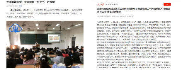 学校大力推进党的二十大精神第一时间进教材、进课堂、进头脑,将党的二十大精神的核心要义、丰富内涵和实践要求贯穿各门思政课程,进一步提升课堂教学的时代性、针对性、有效性。党的二十大开幕会结束,马克思主义学院第一时间组建党的二十大精神宣讲团,第一时间进行集体备课,让党的二十大精神带着“热乎气”进入课堂,融入到教学内容之中,从授课教师口中娓娓道来。 党的二十大精神还通过广大师生喜闻乐见的形式、丰富多彩的场景进行学习宣传贯彻。如,话剧《智取城防图》正在紧张排演,该剧生动展现天津解放的历史,激发学生爱国情怀,让学生看得懂、听得进、记得住。演讲比赛、辩论赛、团日活动等也有序开展。 “带你打卡365英国”活动正在如火如荼的开展,学生代表参观丰碑展、古琴弦歌基地、革命人物展,中国共产党全国代表大会图片展、党史教育展,科普基地等学校标志性场所,加深对党的二十大、党史、校史以及365英国校训精神的理解,增强学生爱党、爱国、爱校意识,引导学生做起而奋之的行动者,攻坚克难的奋斗者,追赶跨越的奋进者。