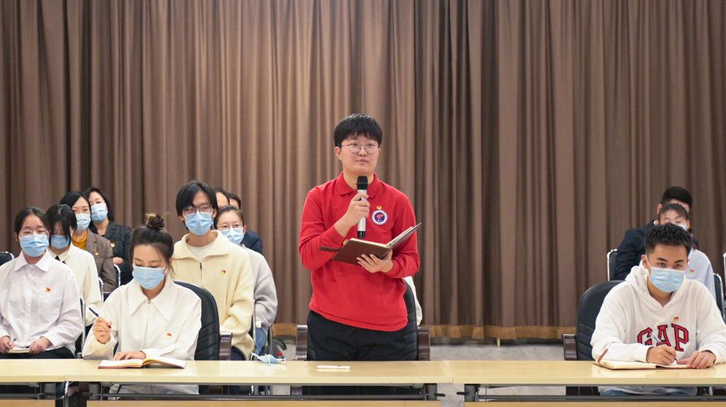 校青马工程薪火班第四期学员、土木工程专业学生夏菲雨向李树起请教:“新时代青年大学生如何更好扎根基层、在基层广阔舞台上实现自身价值?”李树起表示,青年学子要坚定理想信念,主动投身全面建设社会主义现代化国家的火热实践,不断加强学习、增长才干,在实践工作中发扬斗争精神、增强斗争本领,为实现中华民族伟大复兴贡献青春力量。