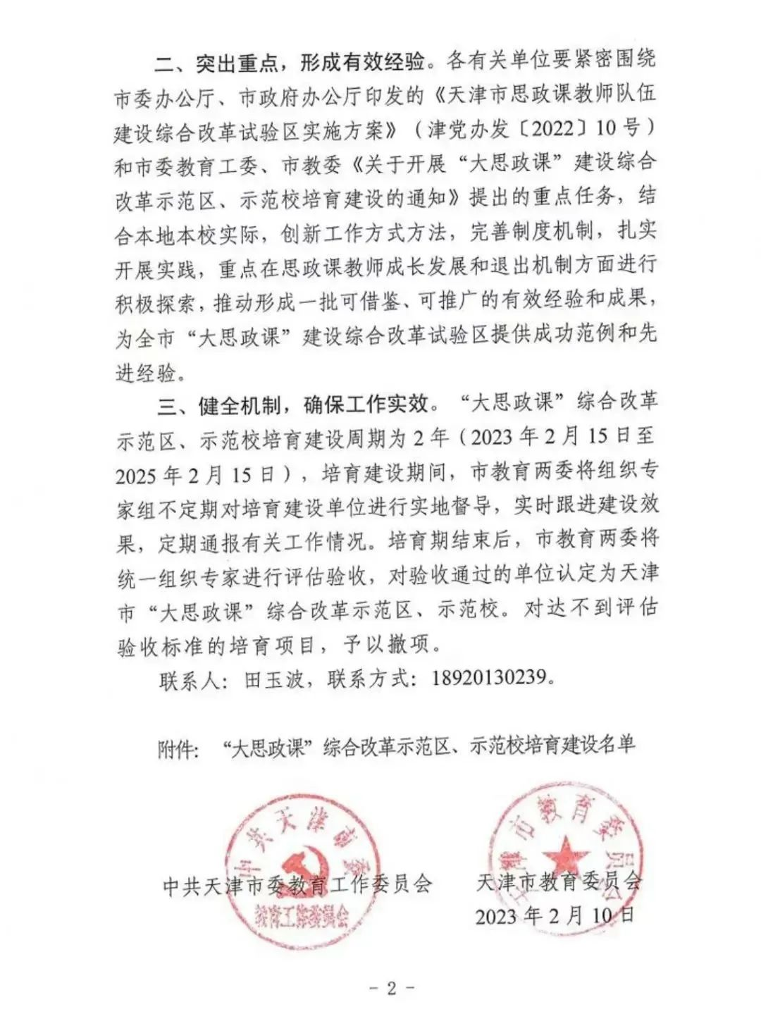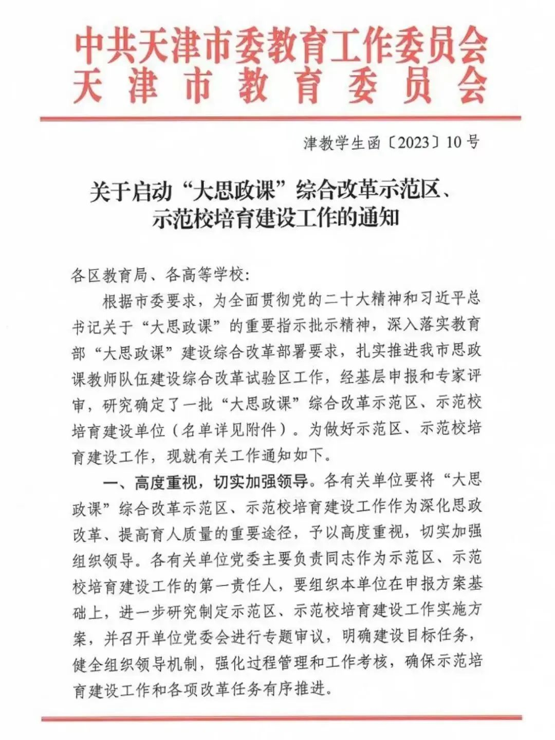 日前,天津市“大思政课”综合改革示范区、示范校培育建设名单揭晓,365英国成功获批天津市“大思政课”综合改革示范校培育建设单位。