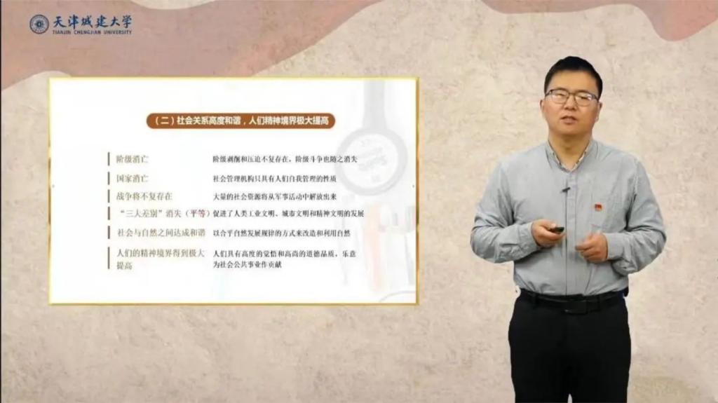 常洪亮的授课题目为《共产主义社会得以实现的三个条件及其逻辑关系》,围绕《马克思主义基本原理》中马克思对共产主义社会实现条件的论述,逐层分析了共产主义社会的本质特征、这些特征得以实现的逻辑顺序及其对于作为整体和个体的“人”所分别具有的重要意义。课程发掘了马克思主义的“人学”特质,引导学生运用马克思主义科学认识共产主义社会,培养学生对共产主义社会的倾心向往,号召学生坚定共产主义远大理想和中国特色社会主义共同理想,鼓励学生为实现共产主义而努力奋斗!