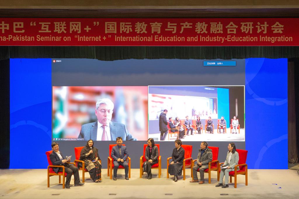 研讨会论坛环节,陈志华作为“数字教育国际化背景下的中巴教育合作” 专题的主持人,同巴基斯坦驻华大使馆、巴基斯坦巴奥大学、成都大学等相关单位的领导专家一起,对数字化背景下的中巴国际教育合作前景、校际协同创新育人模式、中巴经济走廊建设人才支撑以及境外合作办学未来发展方向等展开了研讨。大家一致认为中巴双方将共同努力促进教育领域各层级的密切合作,搭建数字教育交流平台,充实拓展教育合作内涵,为建设中巴经济走廊提供人才和智力支撑。