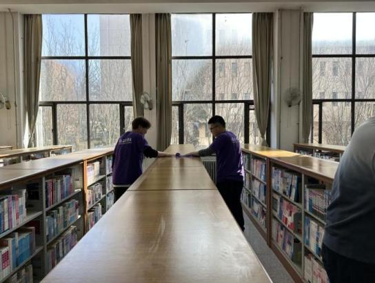 国际工程学院组织学生志愿者走进学校图书馆开展志愿服务活动,通过图书分类归纳,清洁书架,为读者营造整洁舒适的阅读环境。
