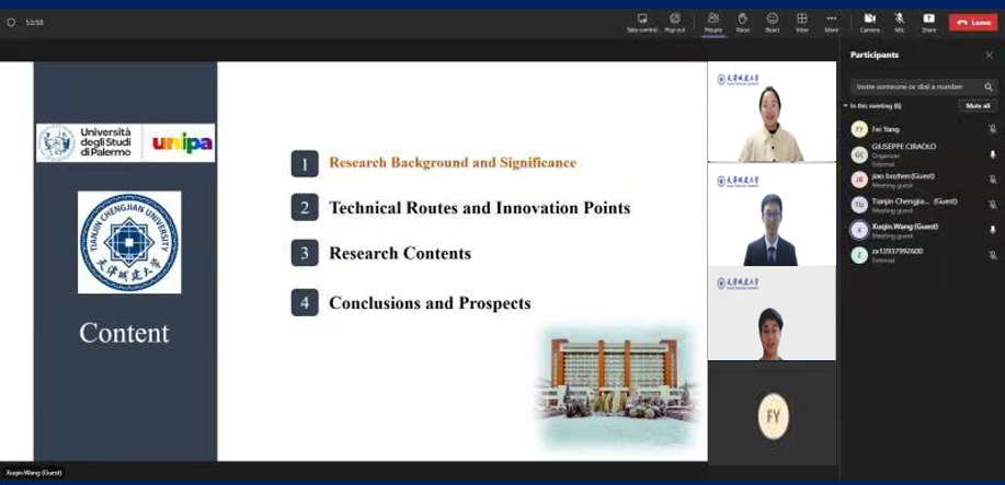 随后,同学们分别就硝化-厌氧氨氧化工艺、纳米颗粒吸附性能以及多环芳烃分布特征等领域的研究内容进行汇报答辩,两校学术委员会相关专家学者听取了答辩,并经讨论决定为学生们授予巴勒莫大学环境科学与工程专业硕士学位。