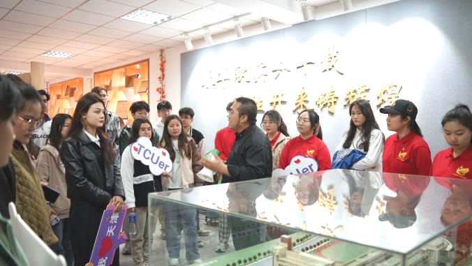 “红旗班”学生党员左欣、张如慧、段金福全程讲解
