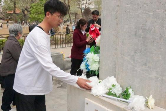学生党员代表韩千龙,以“清明祭英烈,丰碑励青春”为主题,结合自身经历,讲述革命先烈的光辉事迹。他表示,作为青年大学生更应该铭记革命先烈们的光辉事迹,继承和发扬革命先烈们艰苦奋斗、勇于拼搏、无私奉献的革命精神,为中华民族伟大复兴贡献自己的力量。
