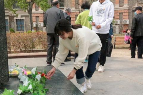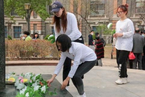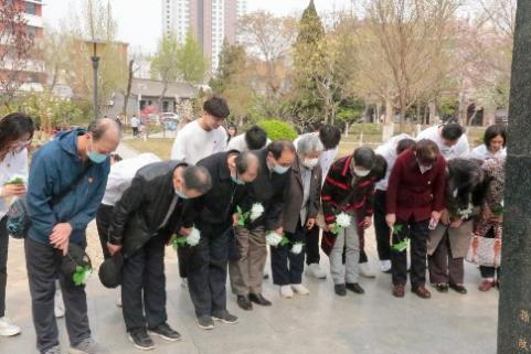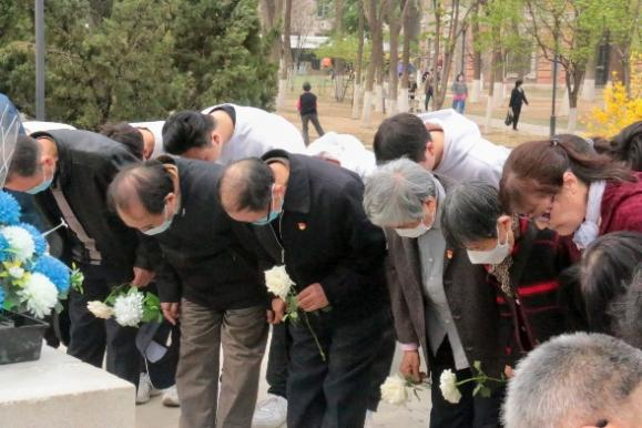 随后,全体师生默哀鞠躬,并向孙中山先生铜像献花,表达了对革命先烈的无限哀思和崇高敬意。
