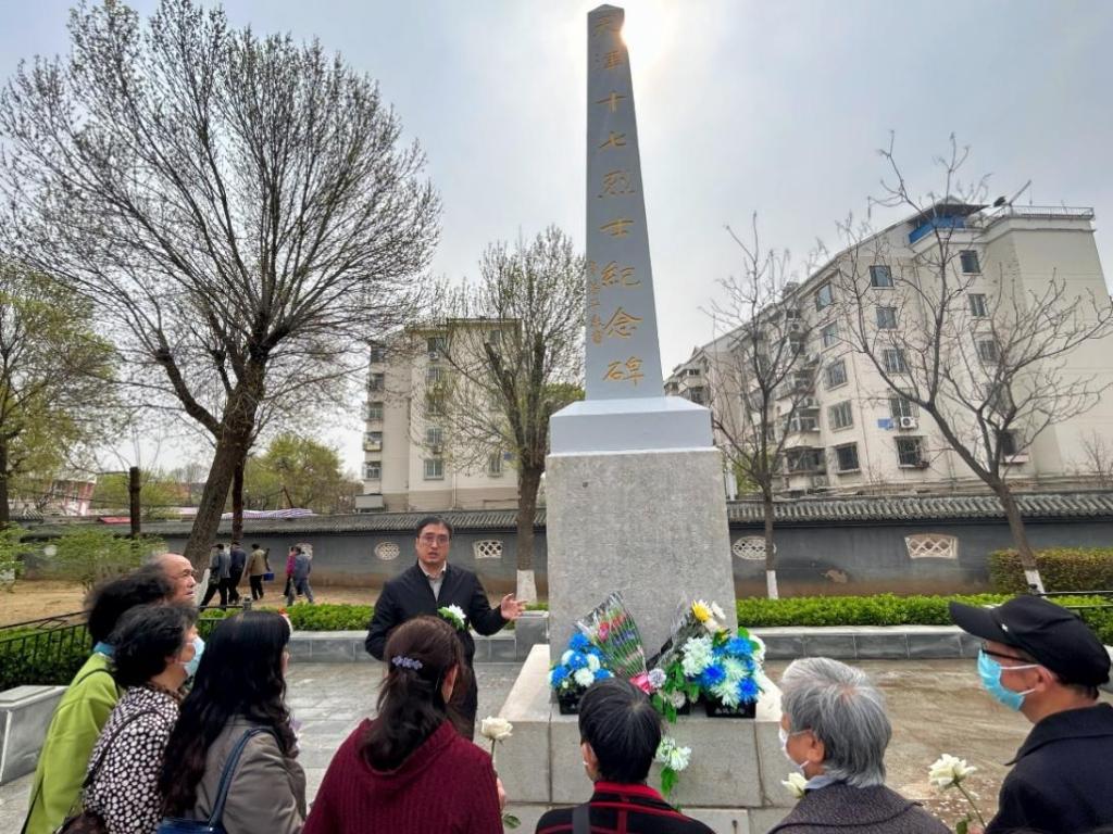在十七烈士纪念碑前,穆桐为大家讲述革命烈士感人肺腑的英雄事迹。退休教师们和同学们一致表示,正是革命先烈的流血牺牲,才换来了我们今天的幸福生活。我们要继承发扬先烈艰苦奋斗、不怕牺牲的革命精神,进一步坚定理想信念,不忘初心、牢记使命,聚微光以成炽阳,为实现中华民族伟大复兴的中国梦贡献力量。