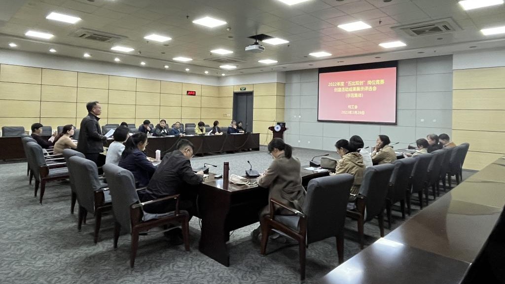 近日,学校分两场举办2022年度“五比双创”岗位竞赛暨示范集体、示范岗创建活动成果展示评选会。相关职能部门负责人、部分教代会执委、各二级分会主席以及参评示范集体代表、示范岗个人近110人参加。会议由校工会常务副主席马中记主持。