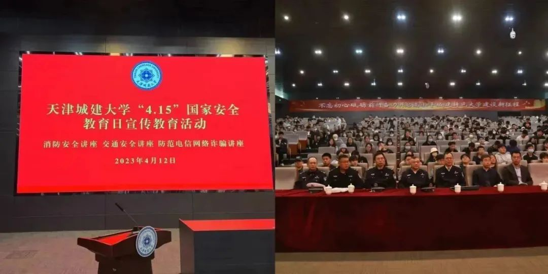 4月12日下午,学校会同公安西青分局在现代教育中心二楼报告厅举办了“4·15”全民国家安全教育日宣传教育专题讲座暨学校反诈义务宣传队成立仪式。学校师生代表、物业人员等300余人参与了本次活动。公安西青分局学苑派出所所长张营、公安西青分局反电诈中心郑元增队长和学校学工部、安工部有关负责同志等为建筑学院葛文博、土木学院苏银等24名同学佩戴“西青区反诈宣传志愿者”袖章。公安西青分局学苑派出所民警陈智、公安西青分局交警支队张家窝大队民警姜辉和西青消防支队选派的工作人员为在场师生先后带来了防范电信网络诈骗、交通安全和消防安全的专题讲座,帮助提高安全意识、提升防范能力。