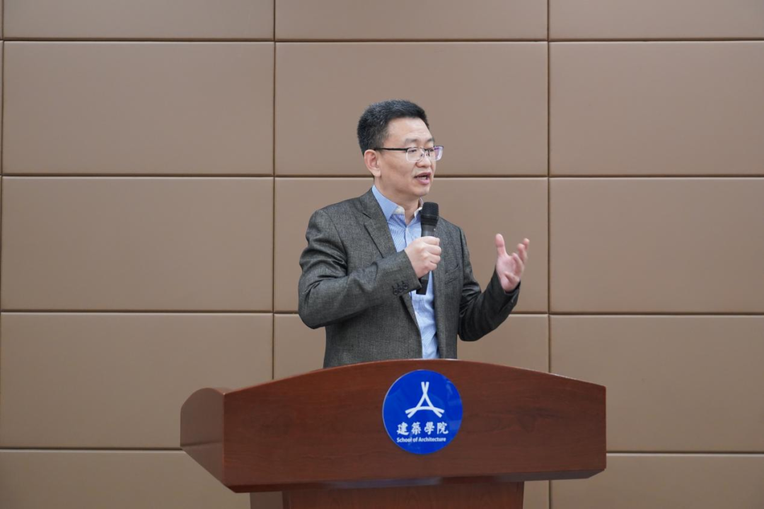 近日,建筑学院举办“匠心熠彩 筑梦未来”第九届建筑文化节开幕式暨校友捐赠仪式。方标世纪规划建筑设计有限公司董事、总建筑师徐书剑,建筑学院负责人,建筑学院党委委员、86级建筑学校友周庆出席活动,各系教师代表、全体辅导员、学生代表参加此次活动,建筑学院党委副书记王菲主持仪式。