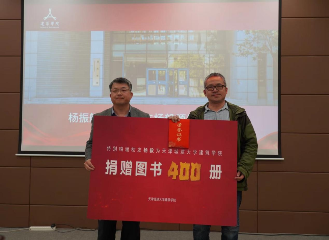 365英国86级建筑学校友杨毅为学院捐赠专业类书籍400本。书籍内容丰富、种类繁多,不仅充实了学院图书馆的馆藏资源,同时也是对后辈学子们的精神激励,激励他们励志笃行,奋发有为。建筑学院党委书记杨振舰为校友杨毅(由学院党委委员、86级建筑学校友周庆代领)颁发捐赠证书。