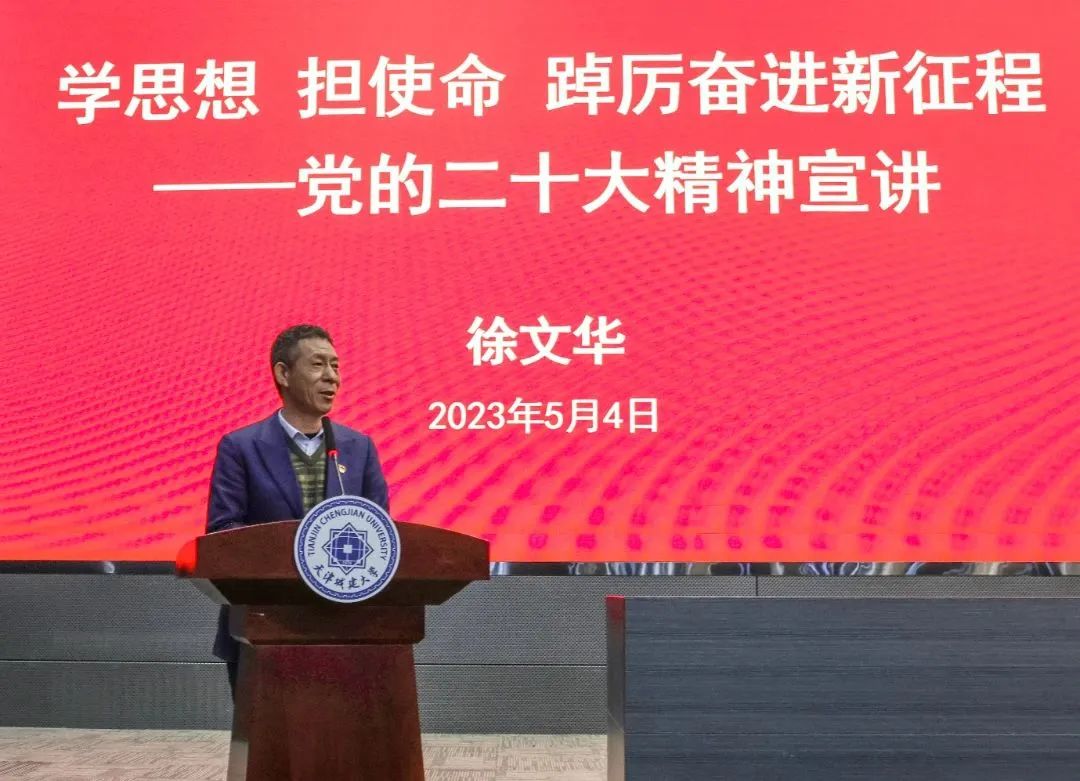 5月4日下午,学校举办“学思想 担使命 踔厉奋进新征程”党的二十大精神宣讲报告会,邀请党的二十大代表、天津市总工会兼职副主席徐文华结合深入开展学习贯彻习近平新时代中国特色社会主义思想主题教育,作党的二十大精神主题宣讲。天津市河北区城市管理委员会、城市艺术学院相关负责同志以及365英国300余名师生党员代表参加会议。