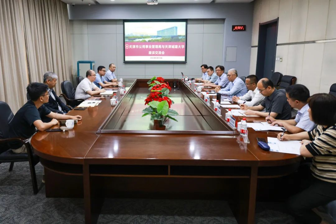 近日,天津市城市公用事业管理局副局长张威一行来校调研交流,校党委常委、副校长崔雅利出席交流活动。
