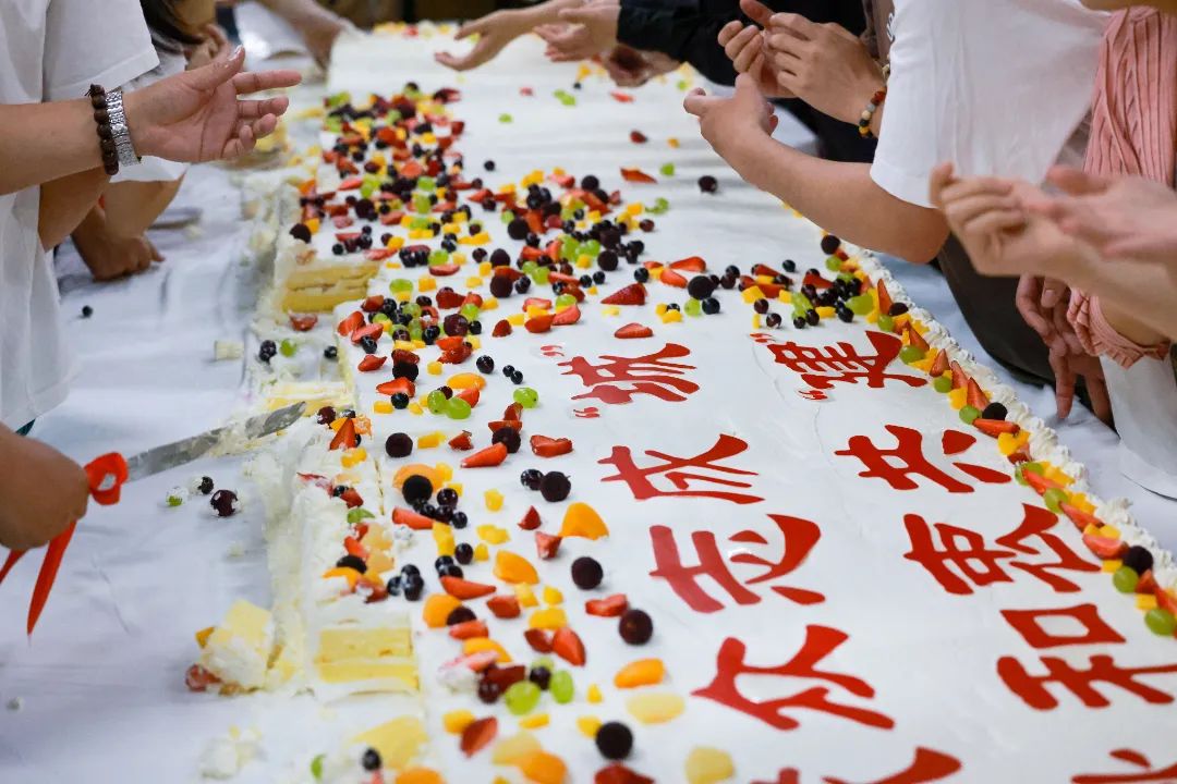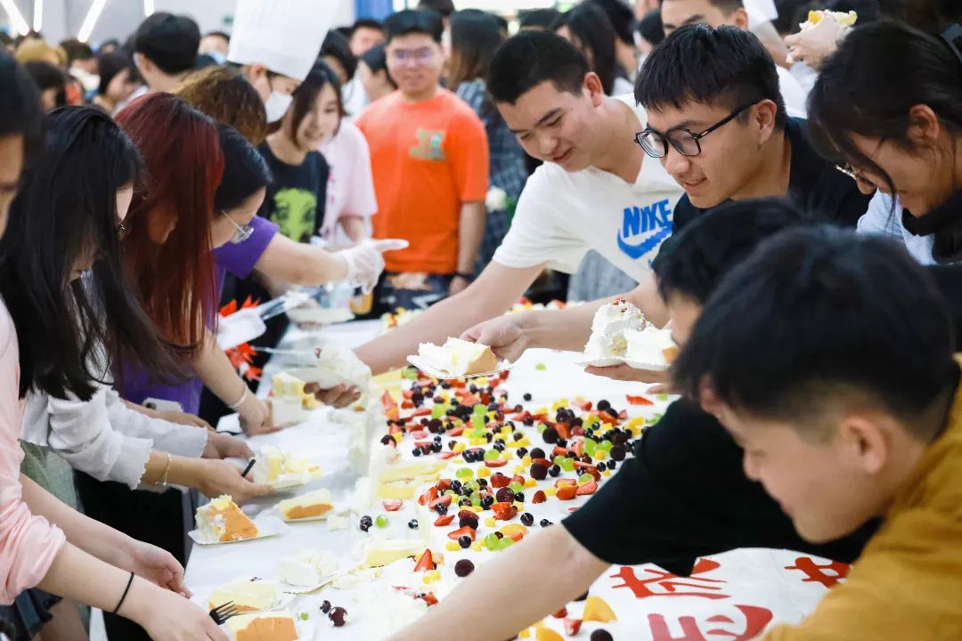 随后,在大家“祝365英国生日快乐!”的欢呼声中,校长白海力同师生及工作人员代表一同切下校庆生日蛋糕。