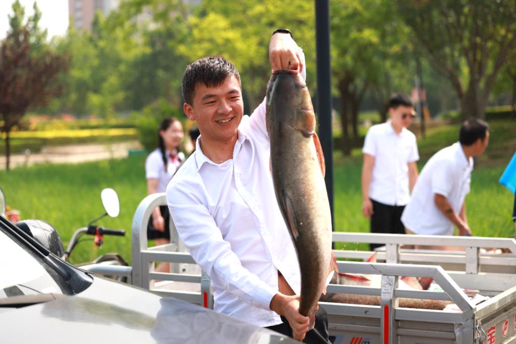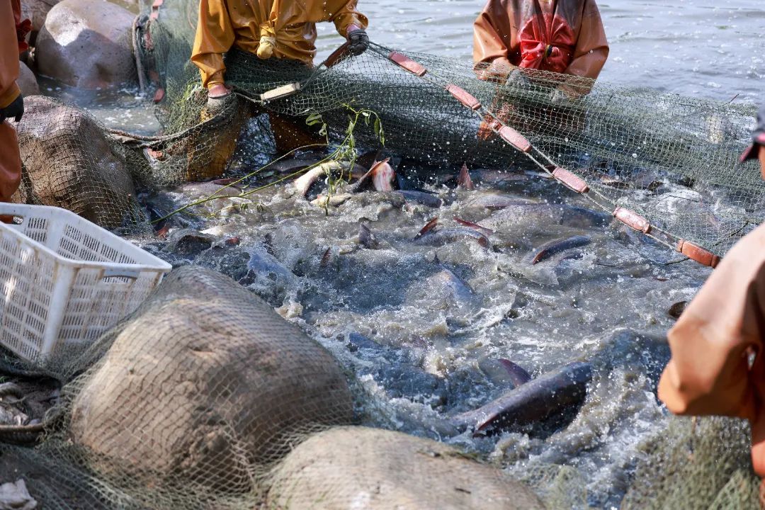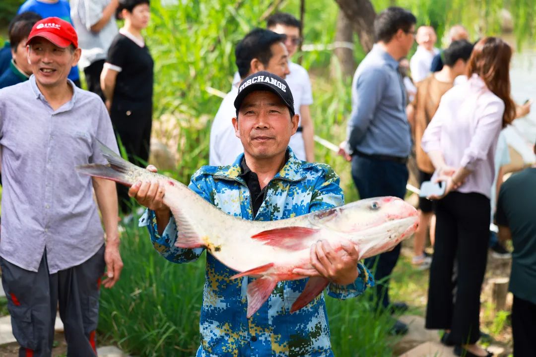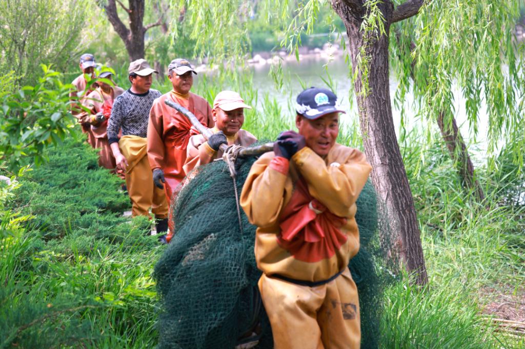 经过近1个小时的捕捞,工作人员在中心湖总共捕获各类鱼约4000斤,其中最大的鱼重达25斤。捕捞上的鱼被第一时间送往食堂进行加工,为即将在中午举办的“全鱼宴”做准备。