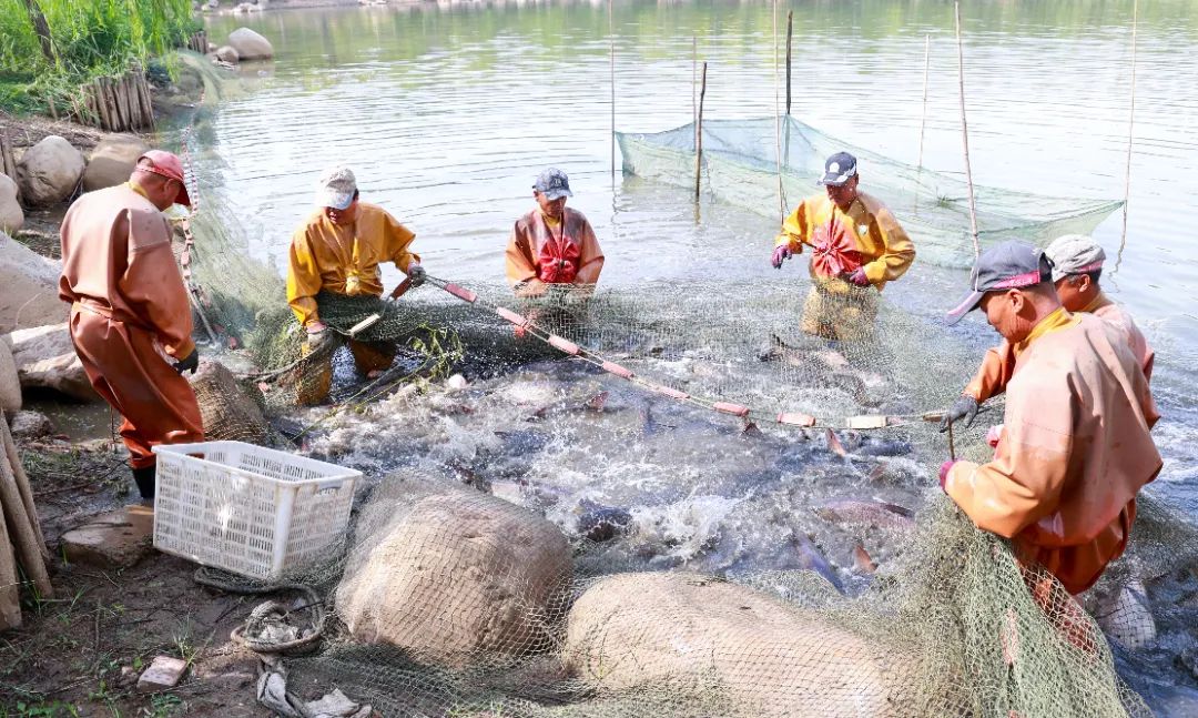 8时30分许,捕鱼节正式开始,随着渔网向岸边收拢,大大小小的鱼逐渐被拉出湖面,不一会儿的功夫,一条又一条的鲤鱼、鲶鱼、草鱼争相跃出水面。