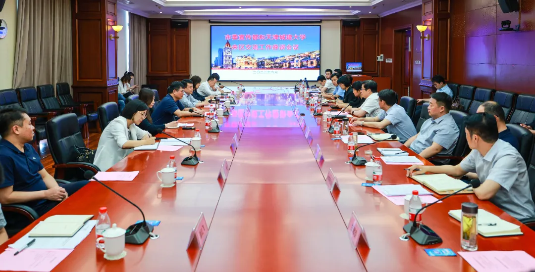 为深入开展学习贯彻习近平新时代中国特色社会主义思想主题教育,进一步贯彻落实习近平总书记关于传承红色基因的重要论述精神,按照天津市委关于开展城市更新行动中保护和利用红色资源调研的部署,学校立足天津丰富的红色资源,发挥建筑遗产保护专业优势,切实履行高校文化传承作用,落实立德树人根本任务,6月2日,校党委书记史庆伟带队前往天津市河北区开展调研交流活动。市委宣传部副部长、一级巡视员张宁宁会同调研。河北区区委副书记、区长戴雷,副书记杨君毅,区委常委、区委宣传部部长李国忠,副区长王荃、李晓霞等同志参加座谈,会议由李晓霞主持。