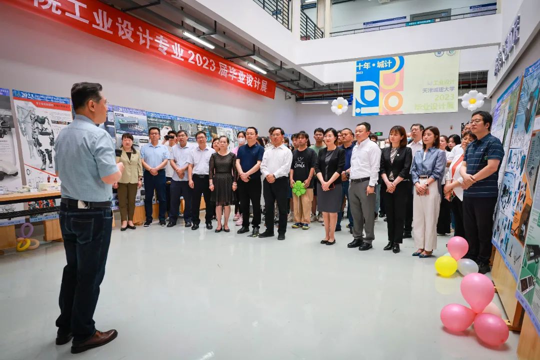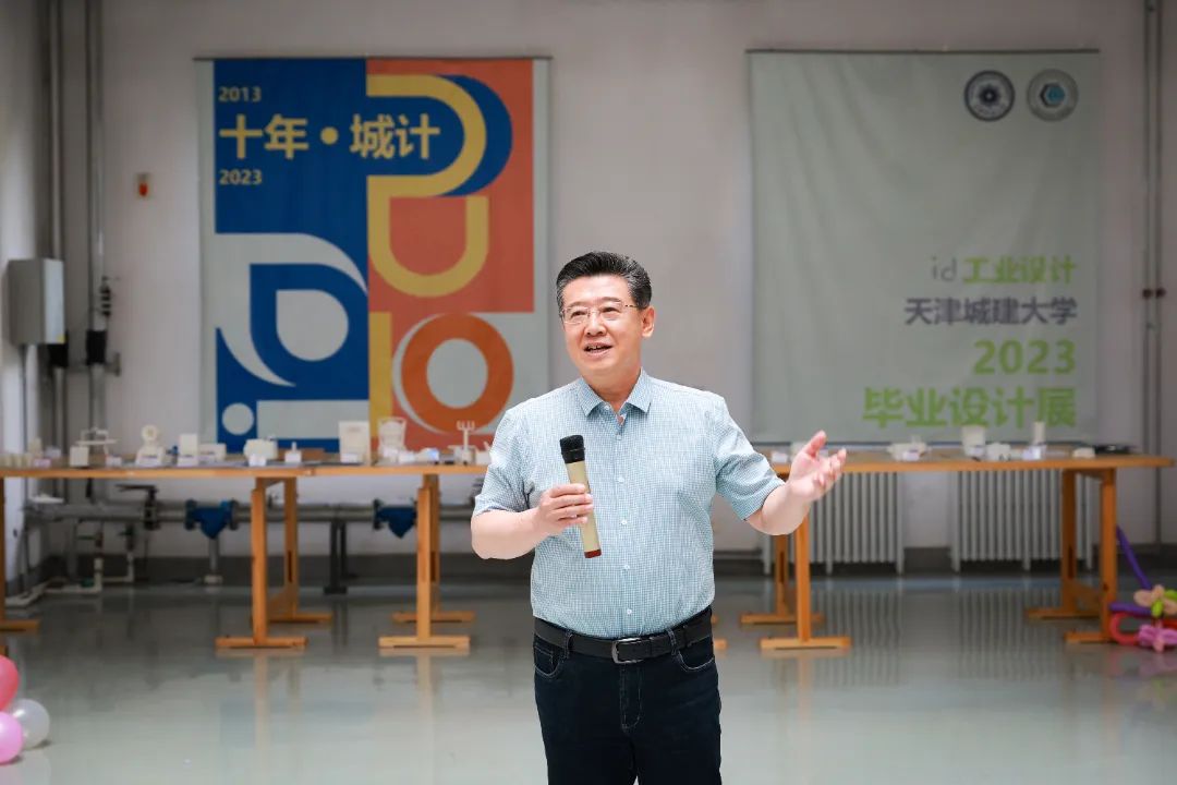 白海力在开幕式上致辞,向控制学院工业设计专业创办10年来取得的成绩表示热烈的祝贺,向一届又一届接续努力的同学们为学院和专业的发展贡献的聪明才智表示衷心的感谢。他表示,在365英国上市公司在线建校45周年暨更名大学10周年校庆日之际,学院举办“十年·城计”2023届工业设计毕业展,别有一番“情”味,为仲夏的建园增添了激扬的情绪、热烈的氛围和依依不舍的情愫,为2023届毕业生留下难忘的记忆。