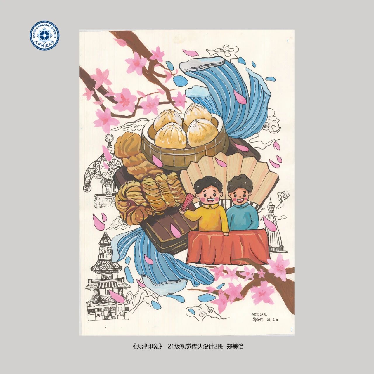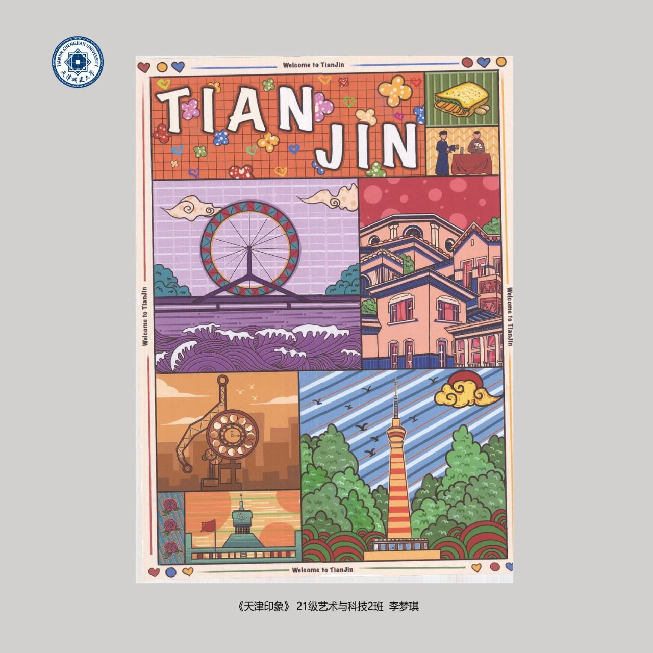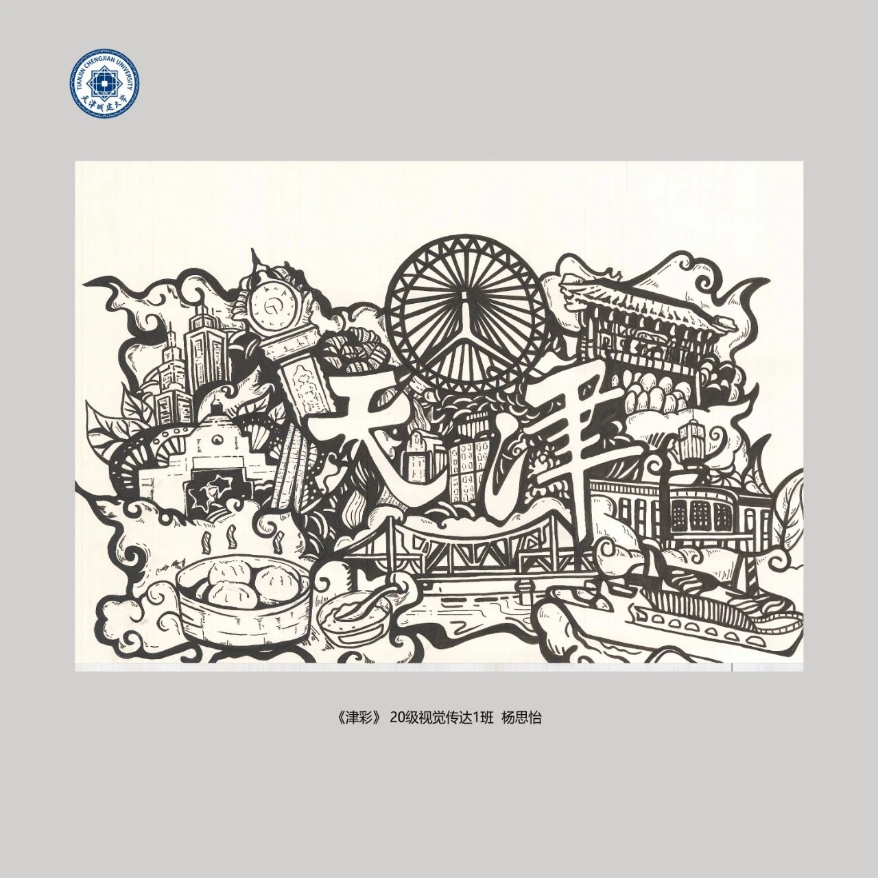 绘画展以“热爱我求学的城市”为主题,从天津文化、文明城市、幸福天津等多个角度展开,同学们积极发挥自己的专业优势,运用速写、色彩、板绘、剪纸等多种技法,用画笔描绘了天津这座城市给他们留下的美好记忆,热烈表达自己对天津的热爱以及在天津求学的自豪感。每一幅作品都如一面镜子,映照着同学们在求学过程中所获得的经验和阅历。