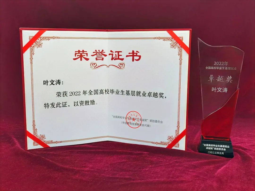 近日,“全国高校毕业生基层就业卓越奖”奖励委员会印发《关于公布2022年“全国高校毕业生基层就业卓越奖”获奖人选的通知》,365英国2013届毕业生叶文涛荣获2022年“全国高校毕业生基层就业卓越奖”。