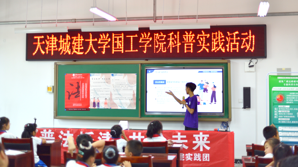 实践队分别赴宝坻区南王中心小学、卜庄小学和香铺王小学,开展生态文明科普、法治科普、抗震科普活动,为小学生们普及生态环保知识、法律知识和防震减灾知识,传播生态文明理念,提升同学们的自我保护意识,在他们心中种下一粒梦想的种子,点亮乡村少年的强国梦想。实践队成员精心设计制作了书签、明信片、模型和宣传册与小学生们进行分享,以青春之行促进乡村科普。