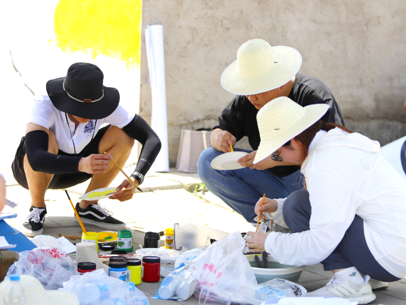 为提升乡风文明,助力乡村振兴,实践队成员前期对接霍各庄镇西霍各庄村,调研乡村需求,结合专业特长,实地勘察制定墙绘方案,按照图稿在墙体打底稿、涂色,用多彩墙绘扮靓美丽乡村。