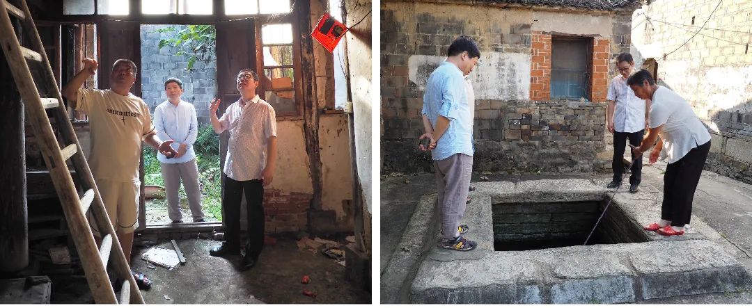 当日下午,调研团在李险峰教授和熊畈村党支部书记、村委会主任熊红芳的陪同下入村调研,考察了“萱荣瑞映”古楼、“九重屋”等文保的保护情况,参观了“乡村振兴基金”项目资助的民宿改建项目施工现场,并对熊畈古井、古排水系统、河滩柳林景观等当地特色自然与人文资源进行实地走访,为365英国师生后续深入熊畈开展专业教学、科研合作工作积累思路。