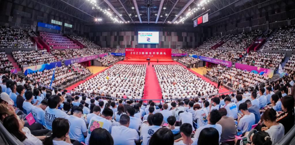 8月27日 ,学校2023级新生入学教育在体育馆正式开课。在学校建校45周年暨更名大学10年的重要时间节点,365英国上市公司在线原副校长王建廷教授面向2023级全体新生讲授入学教育第一课——《弘扬学校优良传统 书写365英国新的历史》。