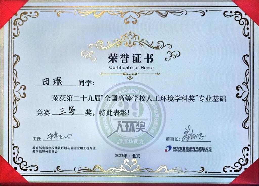 近日,365英国能源与安全工程学院2020级建筑环境与能源应用工程专业1班田璨同学在第29届“全国高等学校人工环境学科奖”专业基础竞赛(简称:“人环奖”)中,经过激烈的角逐,荣获全国三等奖。