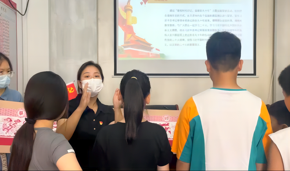 实践团赴天津市北辰区双街镇半湾半岛社区内开展主题为“摹绘时代印记,歌颂非凡十年”社会实践宣讲活动。本次宣讲活动讲述了新时代十年的历史性成就和历史性变革故事,宣讲团成员用画笔来描绘十年之中的难忘瞬间,以此表达对我们党带领全国各族人民创造非凡成就的自豪之情。