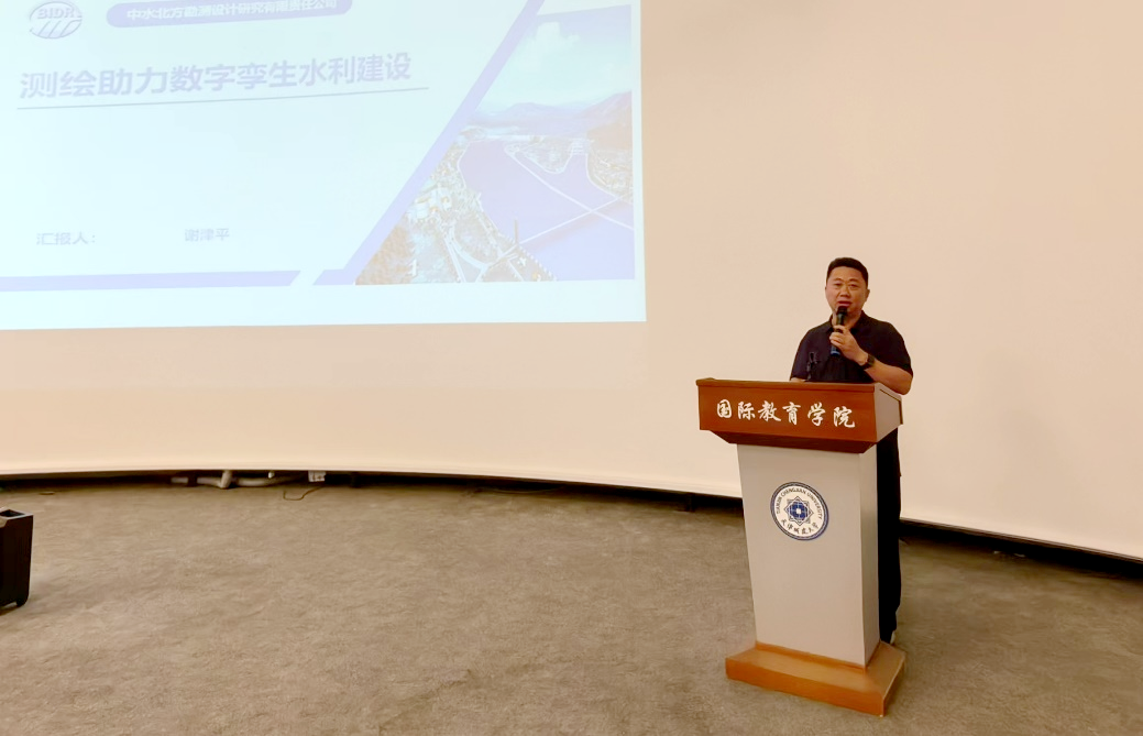 学术讲座由汪东川主持。作为学院资源与环境专业测绘工程方向的校外导师,谢津平以“测绘助力数字孪生水利建设”为题给学院师生上了一堂生动的学术前沿讲座。谢津平由数字孪生的概念引入,从“基”、“据”、“模”、“用”四个方面介绍了数字孪生水利与测绘的关系,从“天空地水”一体化、数字底板制作、AI模型引入等方面,详细介绍了数字孪生水利建设案例。