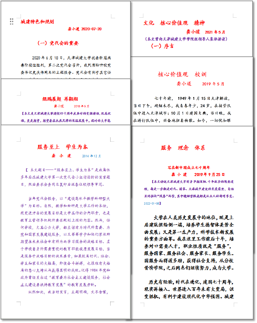 自1992年离休后,龚老仍坚持每天读书看报,加强理论学习,坚定理想信念,与党同心、与党同行。为便于整理保存学习笔记,在耄耋之年龚老以惊人的毅力掌握了电脑的使用,写下数百篇学习笔记和心得体会,并多次向学校提交自己手写或打印的书面建议,积极地为学校发展建言献策。