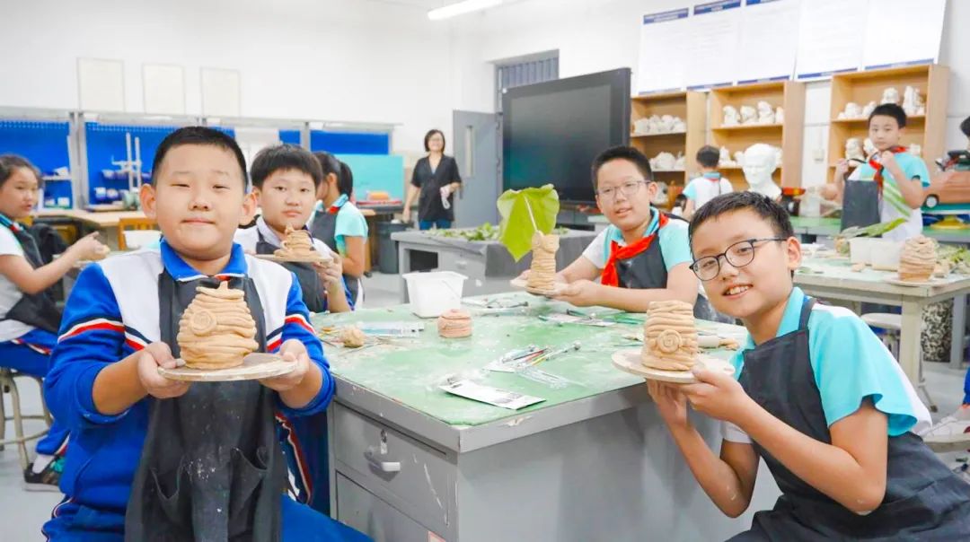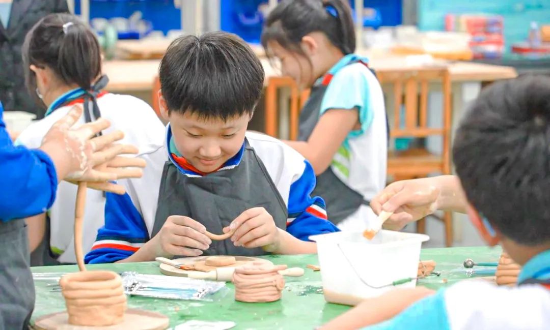 看着可爱的孩子们把泥巴塑成形态各异的笔筒、用黑色笔认认真真地勾勒出敦煌壁画中的佛像图、在透明的小花盆里搭建出植物生态微景观,我们的大学专业课教师和带队的中小学教师都欣慰地笑了。